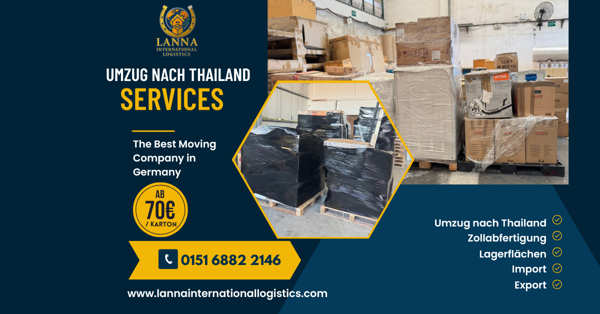 Willkommen bei Lanna International Logistik. Wir bieten Ihnen den Transport von Waren und Sendungen von Thailand nach EU und EU nach Thailand. Wir führen Ihren Umzug für Sie durch mit allem was dazugehört. Abholung und Zustellung am Bestimmungsort.